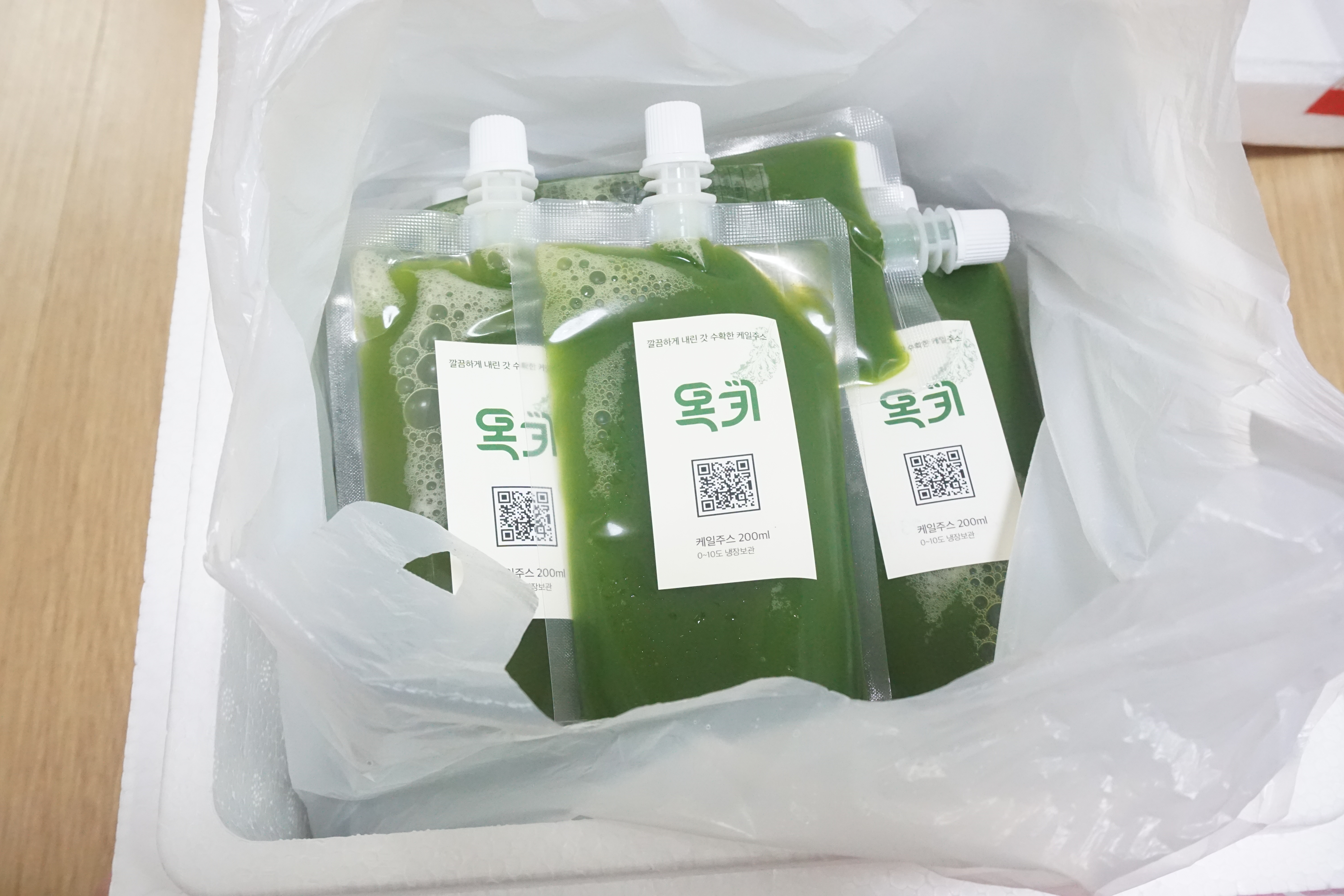 아이스박스에 담겨 신선 배송된 사과케일주스
